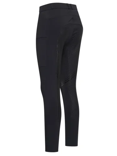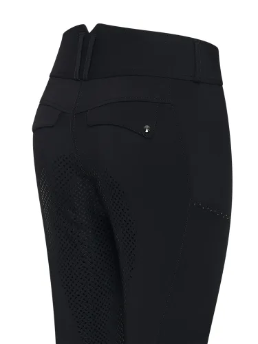 Ratsastushousut, jotka yhdistävät tyylin, mukavuuden ja käytännöllisyyden. Supervenyvä kangas takaa liikkumisvapauden jokaisessa tilanteessa, silikoninen täysgrip tarjoaa varmaa pitoa ja joustava vyötärö vyölenkeillä antaa eleganttisen ilmeen.
