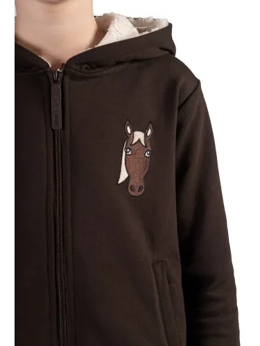Mia pusero on lämmintä sekä pehmeää teddykangasta ja koristeltu hevosenpää kirjonnalla. Mukava ja lämmin valinta jokapäiväiseen käyttöön.