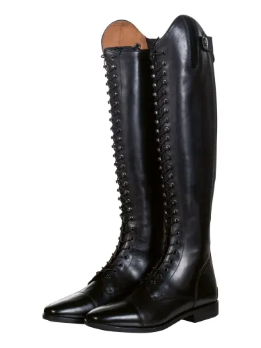 Ratsastussaappaat Elegant Lace – laadukkaat nahkasaappaat, joissa on kauniit narukiinnitykset ja vetoketju. Narujen ja vetoketjun yhdistelmä takaa varman istuvuuden ja mukavuuden.