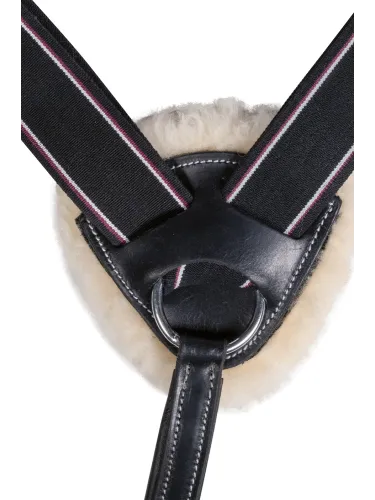 Rintaremmi-martingaali lampaanvillapehmusteella. Martingaali on irrotettava. Lampaanvilla kiinnittyy tarranauhakiinnityksellä ja on helposti irrotettava. Valmistettu laadukkaasta nahasta, painepisteissä pehmeä pehmustus. Joustava lisäyksityiskohta paremman liikkumisvapauden takaamiseksi.
